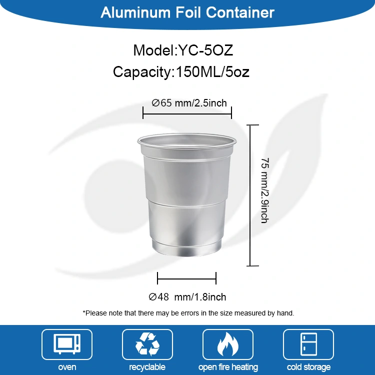 Ostalaritza eta txikizkako agertokiak: kafetegiak, esne-te-dendak eta zuku-dendak edari txikiak eta laginak gordetzeko erabil daitezke. Ahalmen bikainak eta distira metalikoak markaren ehundura hobetzen du; izozki-dendak eta postre-dendak mini-postre edalontzi gisa erabil daitezke izozki-bolak, mousse zati txikiak, etab eramateko. Aluminiozko materialak tenperatura baxua hobeto mantendu dezake eta zaporearen iraupena luzatzen du. Yunchu Aluminium Foil-en produkzio-gaitasun profesionalek markaren LOGOAK pertsonalizatzen lagundu dezakete edalontziaren gorputzean, merkatariei markaren aitorpena indartzen lagunduz.