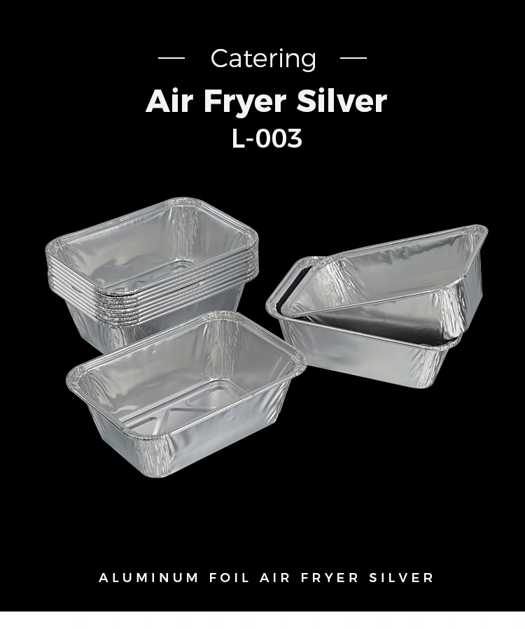 Yunchu aluminio-paperaren fabrikatzailearen laukizuzen botatzeko aire frijigailua zilarrezko aluminio-paperaren ontzia egokia da eguneroko gozogintzarako, airez frijitzeko, kanpoko kanpinetarako eta afarietarako, eta aluminiozko paperezko ontzien tenperatura altua mantentzen du.