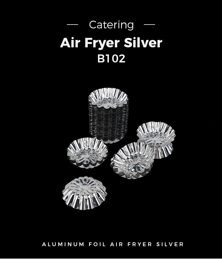 Yunchu Aluminum Paper Arrautzak Tartsak Aireko Fryer Zilarrezko Aluminiozko Paperezko Elikagaien Elikadura Edukiontzi batean labean daude