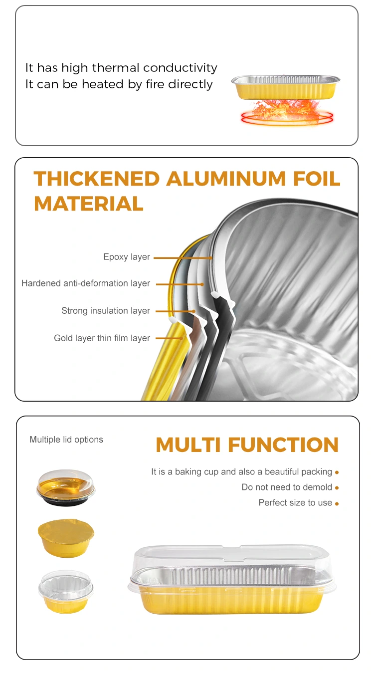 • Laukizuzen gozogintza tarta leuna aluminiozko papera edukiontziakLaukizuzen gozogintza tarta leuna aluminiozko papera edukiontziak
