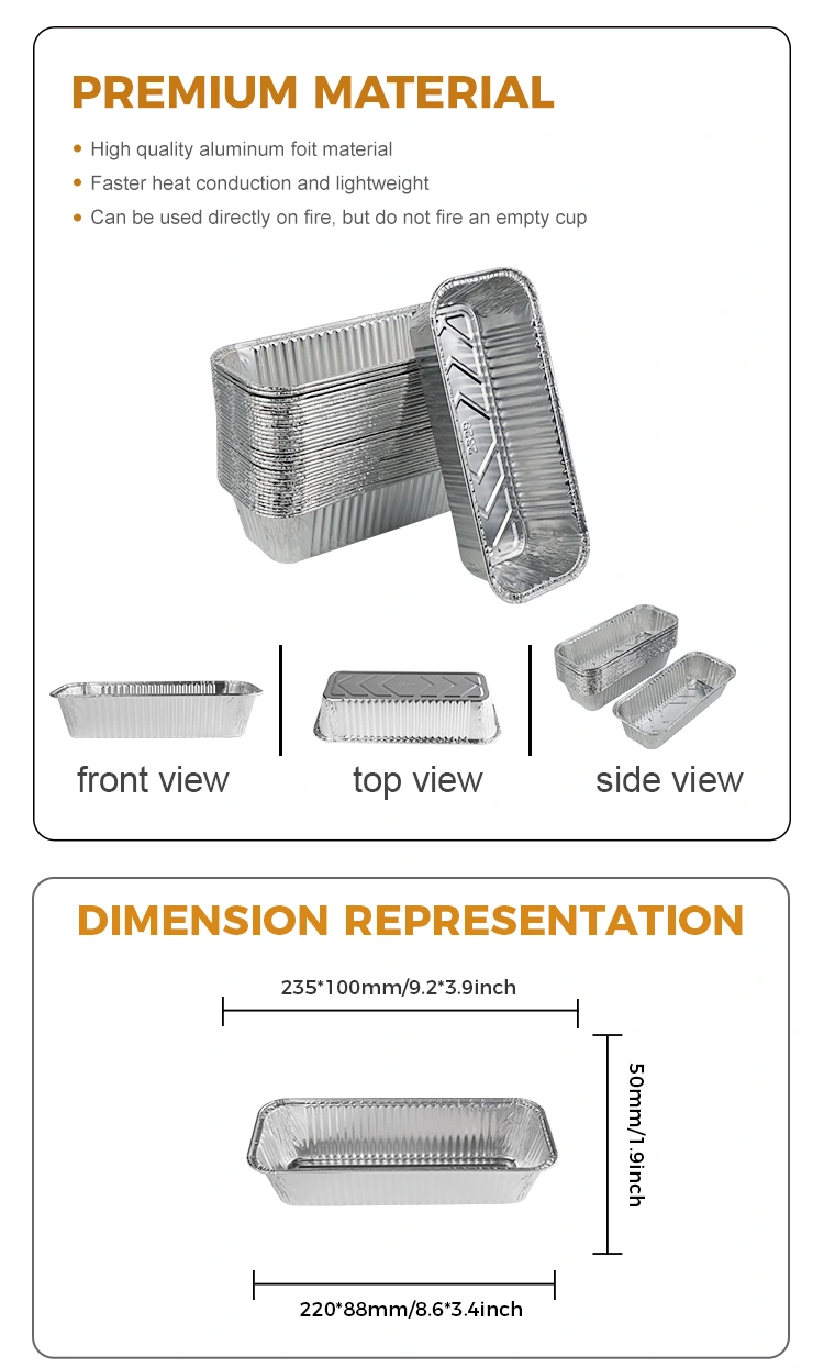 Edukiontzi hau beroarekiko erresistentea eta olioarekiko erresistentea izateaz gain, oso erraza da labean, batez ere, aireko frijitzaileetan eta bestelako ekipamenduetan erabiltzeko egokia da. Jarri janaria edo zopa sartu erabiltzerakoan, lehortzen kezkatu gabe. Etxeko erabiltzaileentzat, are garbiagoa eta erosoa da, garbiketa gabeko diseinuarekin garbiketa erraza eta azkarra bihurtzen duena. Zilarrezko aluminiozko paperezko edukiontzi laukizuzena zure sukaldean ezinbesteko laguntzailea da. Eguneroko sukaldaritza edo une bereziak izan ala ez, irtenbide ezin hobea eskaintzen du. Zatoz eta erosi zure sukaldaritza bizitza erosoagoa eta goxoa izan dadin!