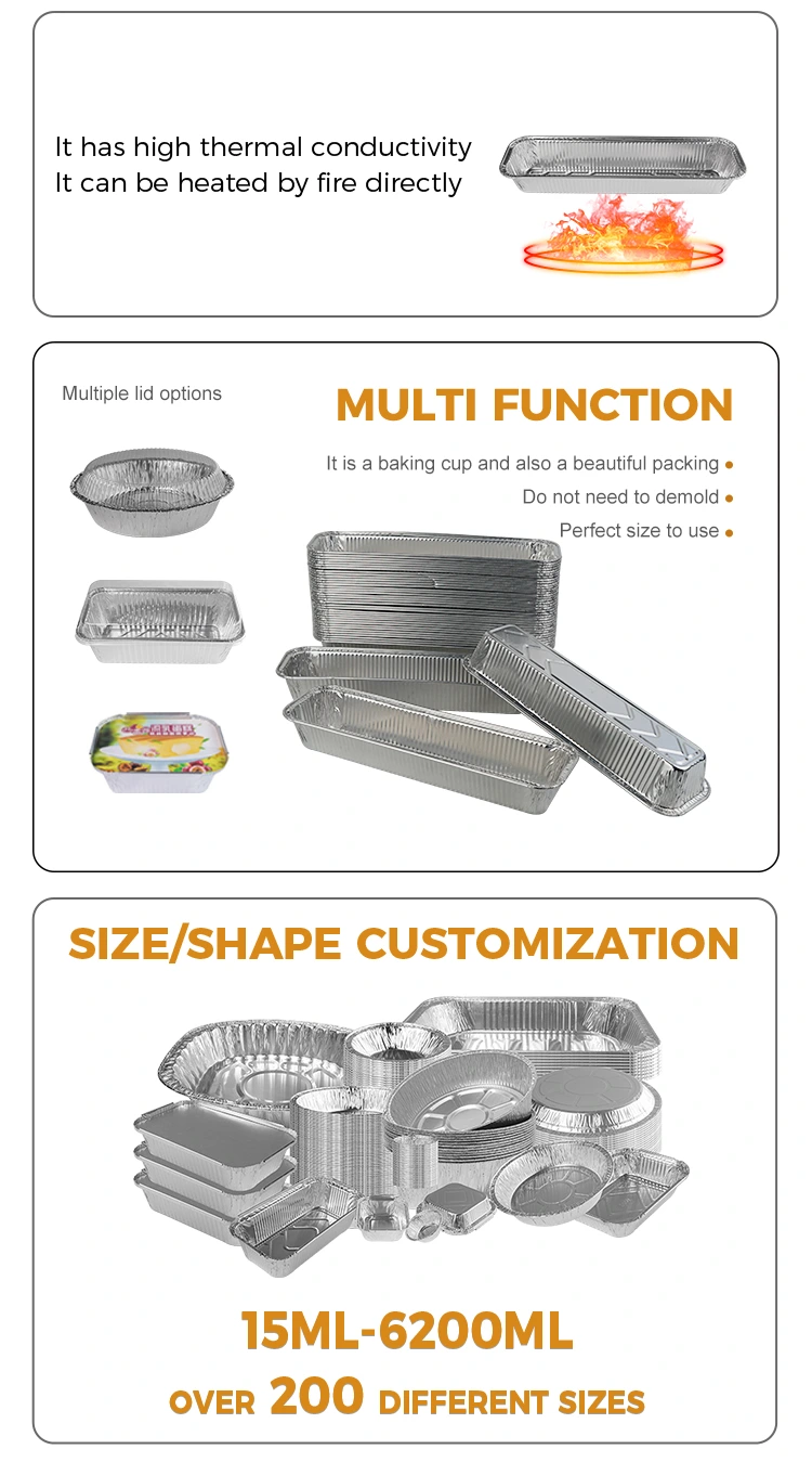Galderak egiteko, leuntzeko aluminiozko paperezko edukiontziak, zilarrezko aluminiozko paperezko edukiontziak, atsegin handiz utzi zure helbide elektronikoa gurekin eta zurekin harremanetan jarriko gara 24 orduren buruan.