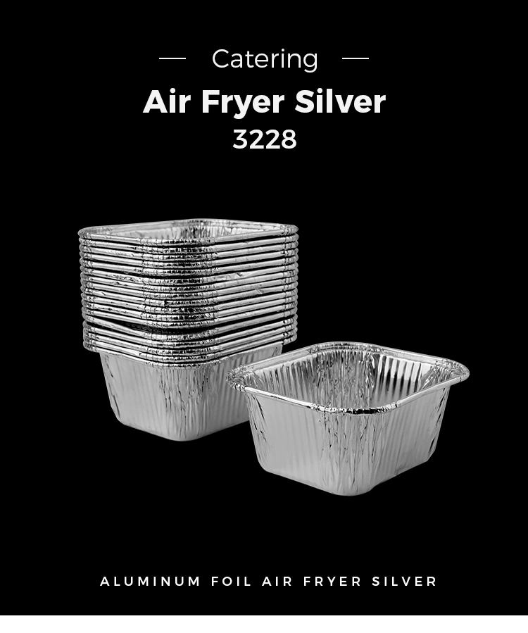 • Square gozogintza xafla Air Fryer Zilarrezko Aluminiozko Paperezko edukiontziakSquare gozogintza xafla Air Fryer Zilarrezko Aluminiozko Paperezko edukiontziak